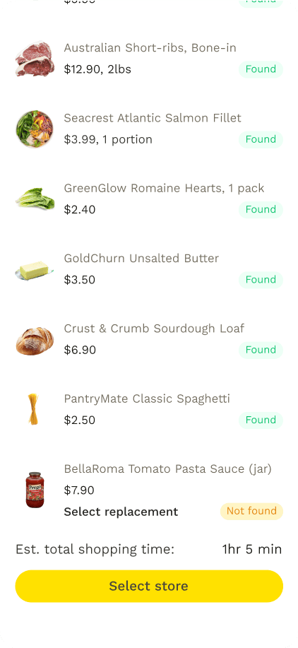 It’s difficult to know what is in stock before going to the store. Online grocery delivery applications ask you to select the store before selecting your items.