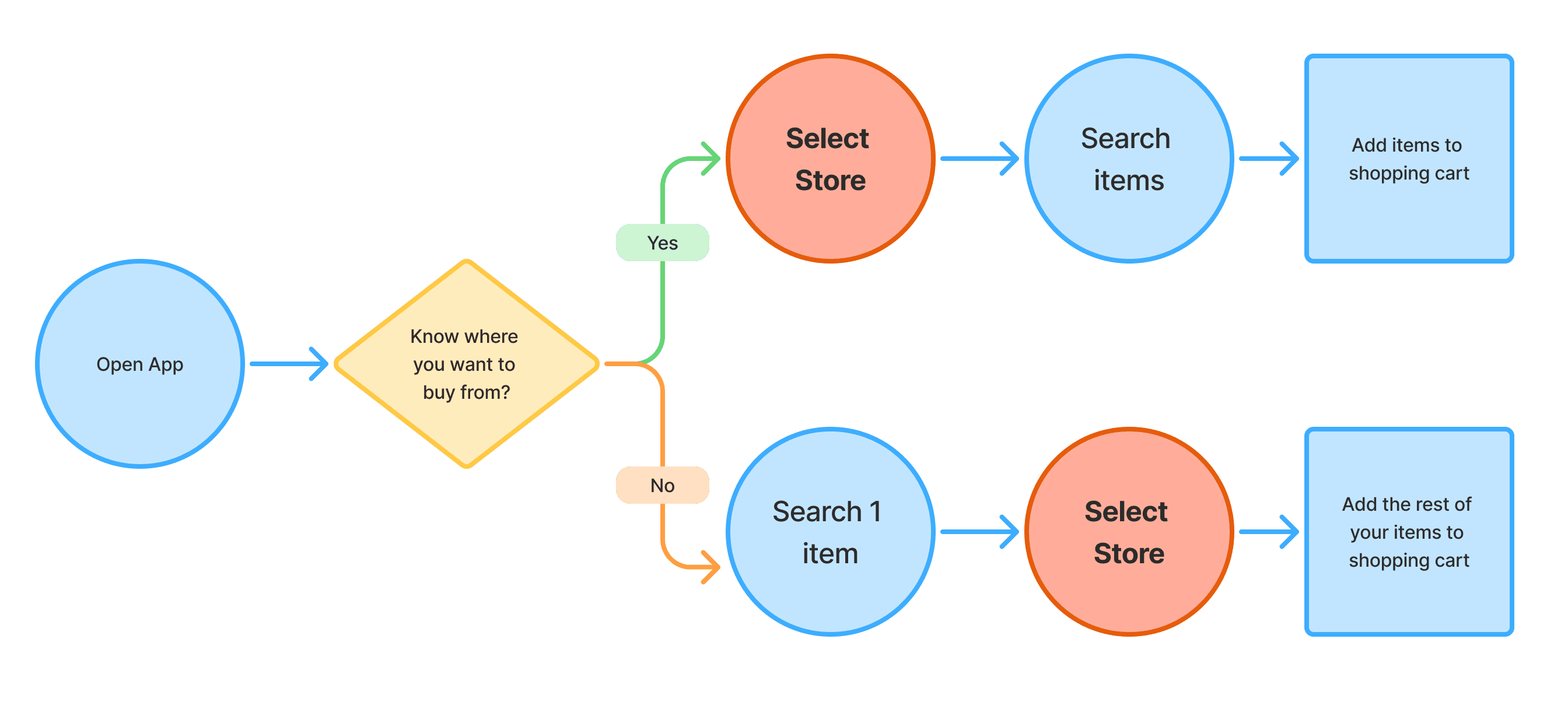 Common user journeys for online grocery shopping and inventory check
