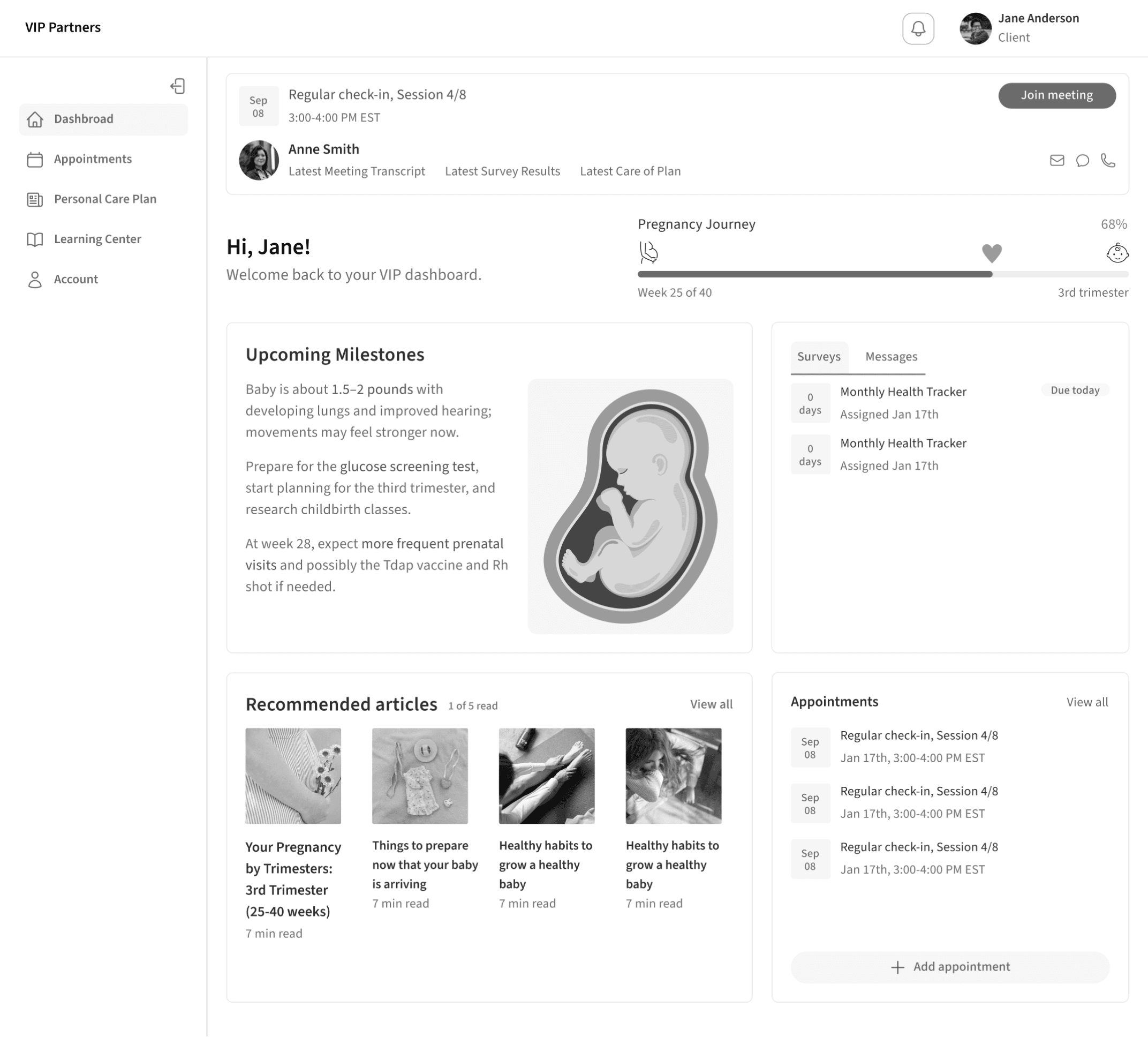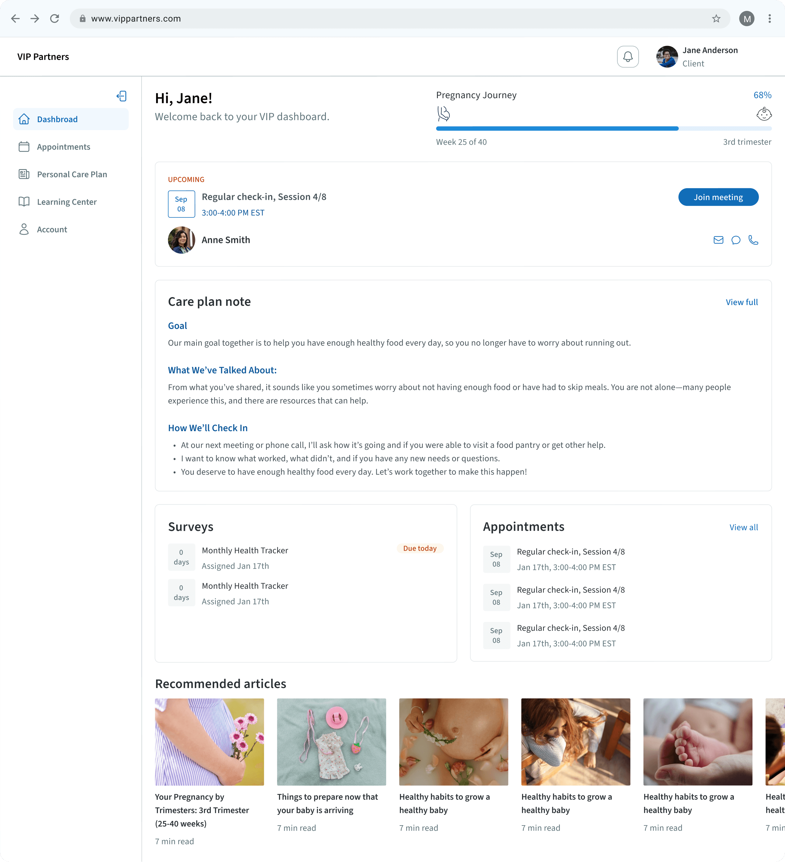 An online maternal health platform with 1:1 coaching, personalized care plans and verified educational materials.